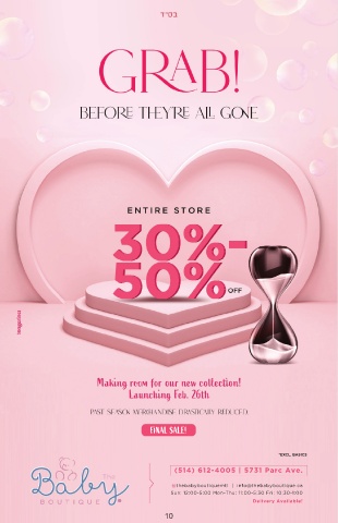 FINAL SALE! *EXCL. BASICS (514) 612-4005 | 5731 Parc Ave. thebabyboutiquemtl | info@thebabyboutique.ca Sun: 12:00-5:00 Mon-Thu: 11:00-5:30 Fri: 10:30-1:00 Delivery Available! 10