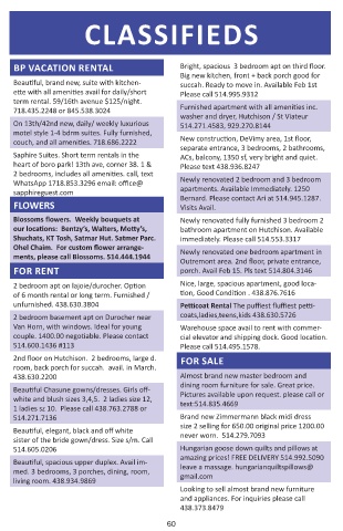 Shuchats, KT Tosh, Satmar Hut. Satmer Parc. immediately. Please call 514.553.3317
