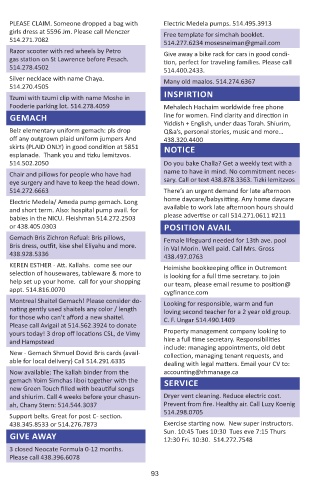 eye surgery and have to keep the head down. sary. Call or text 438.878.3363. Tizki lemitzvos