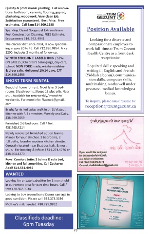 Classifieds deadline: