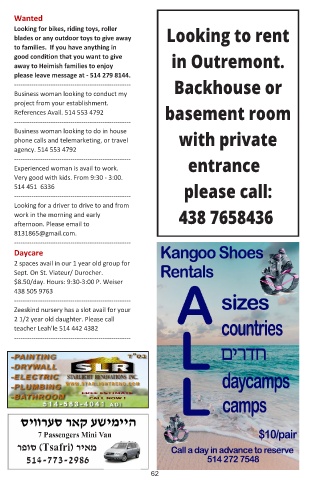 i!:ln, (Tsafri) ,,Nt) Call a day in advance to reserve