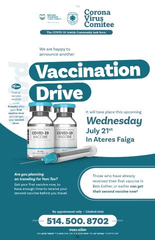 Get your first vaccine now, to Beis Esther, or earlier can get