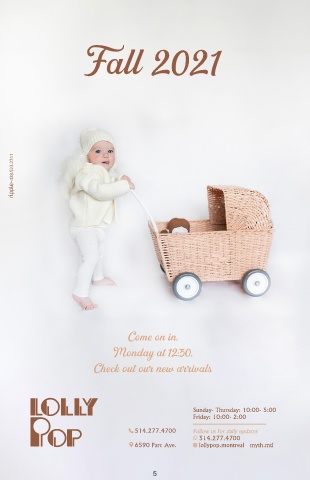 Fall 2021 Come on in, Monday at 12:30, Check out our new arrivals Sunday- Thursday: 10:00- 5:00 Friday: 10:00- 2:00 514.277.4700 Follow us for daily updates 514.277.4700 6590 Parc Ave. lollypop.montreal myth.mtl 5