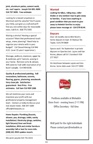 budget? Call Devori Herzog 514 946 Spaces avail. for September in private