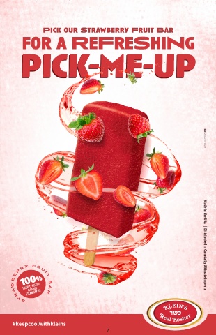 Pick our Strawberry Fruit Bar for a ReFreShiNg pick-me-up 100% Made in the USA | Distributed in Canada by Ultimate Imports S T R AW B E R R Y F R U I T Freshly-picked, cleaned strawberries B A R #keepcoolwithkleins 7
