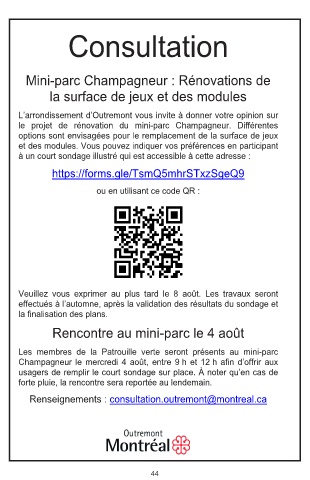 Renseignements : consultation.outremont@montreal.ca