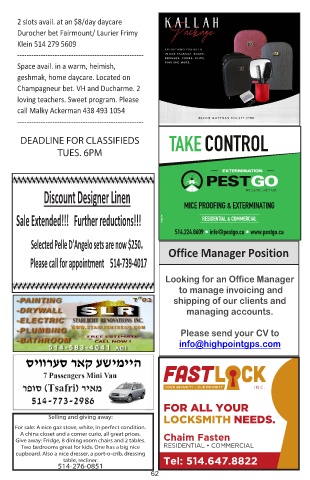 DEADLINE FOR CLASSIFIEDS TAKE CONTROL