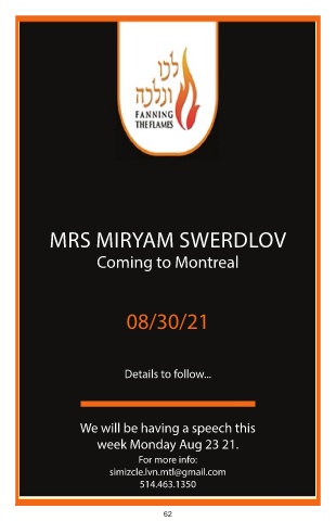 MRS MIRYAM SWERDLOV Coming to Montreal 08/30/21 Details to follow... We will be having a speech this week Monday Aug 23 21. For more info: simizcle.lvn.mtl@gmail.com 514.463.1350 62