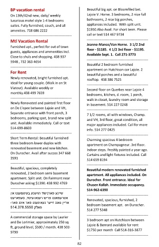Viateur). Available weekly or Second floor on Querbes near Lajoie 4