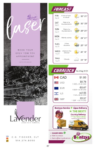 EREV Y OM T O V Aug 25 shower 26° 18°