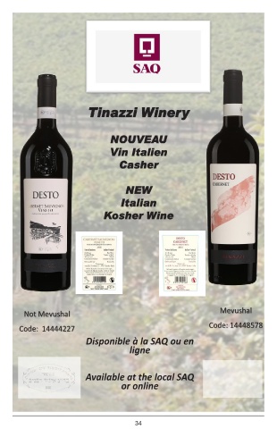 ד Tinazzi Winery NOUVEAU Vin Italien Casher NEW Italian Kosher Wine Not Mevushal Mevushal Code: 14444227 Code: 14448578 Disponible à la SAQ ou en ligne Available at the local SAQ or online 34