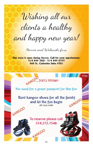 Wishing all our clients a healthy and happy new year! Harris and Wolanski furs Our store is open during Succos. Call for your appointment. 514 849 3801 514 849 8793 460 St. Catherine Suite #301 67