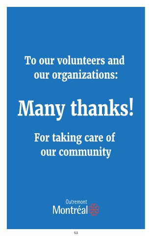 To our volunteers and our organizations: Many thanks! For taking care of our community 53
