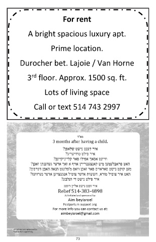 For rent A bright spacious luxury apt. Prime location. Durocher bet. Lajoie / Van Horne 3 floor. Approx. 1500 sq. ft. rd Lots of living space Call or text 514 743 2997 73