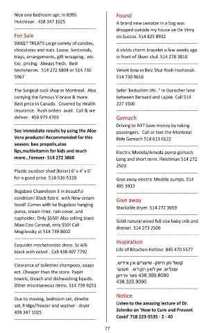 hechsherim. 514 272 6804 or 514 730 Velvet bow in Belz Shul Rosh Hashanah.