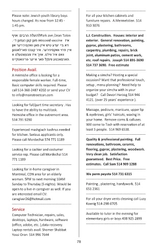 call 514-360-2487 #202 or send your CV organize your simcha with in your
