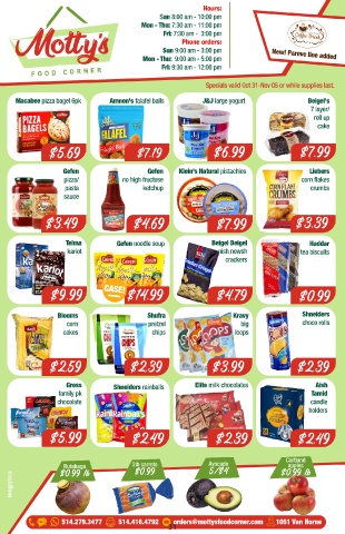 514.279.3477 514.416.4792 orders@mottysfoodcorner.com 1051 Van Horne