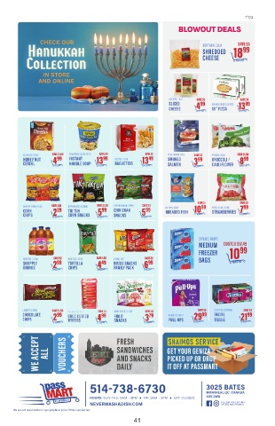 BLOWOUT DEALS CHECK OUR Hanukkah Collection IN STORE AND ONLINE SHAIMOS SERVICE ● ● We are not responsible for typographical errors. While supplies last. 41