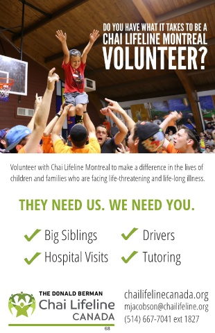 Volunteer with Chai Lifeline Montreal to make a difference in the lives of