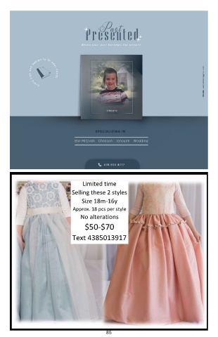 Past Presented SPECIALIZING IN Bar Mitzvah Chosson Tenoyim Wedding Limited time Selling these 2 styles Size 18m-16y Approx. 18 pcs per style No alterations $50-$70 Text 4385013917 85