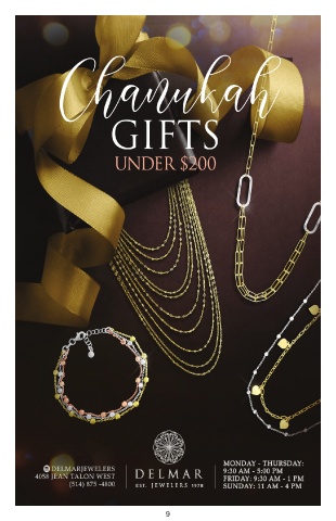 Chanukah GIFTS UNDER $200 E E L M A R R J D E DELMARJEWELERS S L E W L E S W N O 8 J 5 4058 JEAN TALON WEST T 4 0 E T A A N - 0 4 8 4 ) 1 ( (514) 875 -4800 0 5 5 7 8 9
