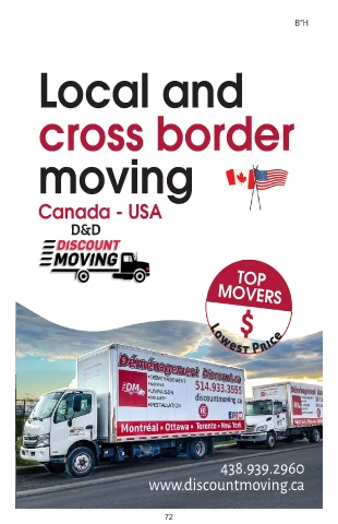 B”H Local and cross border moving Canada - USA D&D TOP MOVERS $ Lowest Price 438.939.2960 www.discountmoving.ca 72