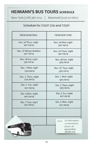 HEIMANN’S BUS TOURS SCHEDULE