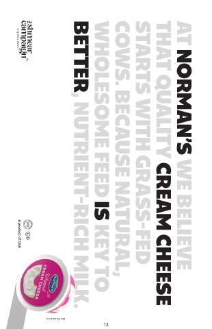 long story short. A product of USA WHOLESOME FEED IS KEY TO BETTER, NUTRIENT-RICH MILK. THAT QUALITY CREAM CHEESE dartmedia.us 13 COWS. BECAUSE NATURAL, STARTS WITH GRASS-FED AT NORMAN’S WE BELIEVE