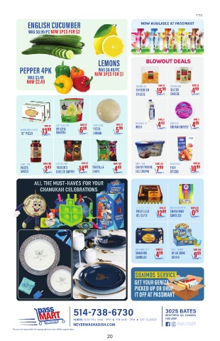 NOW AVAILABLE AT PASSMART BLOWOUT DEALS ALL THE MUST-HAVES FOR YOUR CHANUKAH CELEBRATIONS SHAIMOS SERVICE ● ● We are not responsible for typographical errors. While supplies last. 20