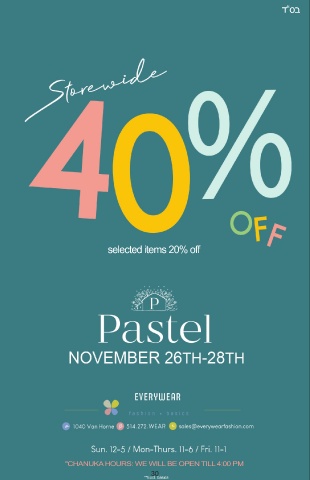 "CHANUKA HOURS: WE WILL BE OPEN TILL 4:00 PM