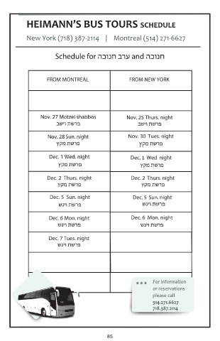 HEIMANN’S BUS TOURS SCHEDULE