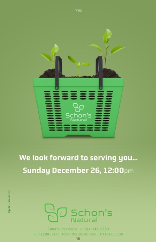 ד"סב We look forward to serving you... Sunday December 26, 12:00pm 1004 Saint Viateur II 514-418-6360 Sun 11:00- 5:00 Mon- Thu 10:30- 5:00 Fri 10:00- 1:00 15