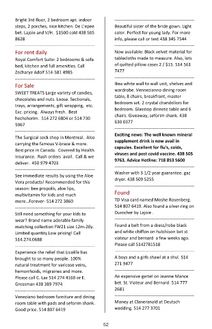 Please call C. Lax 514 274 4160 or E. An expensive gartel on Jeanne Mance