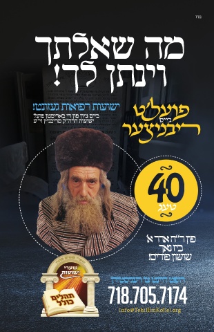 ד"סב ךתלאש המ !ךל ןתניו !טנוזעג תואופר תועושי לעופ ןטמיראב יד ןופ ןויצ םייב ע“יז ץינבירמ ק“הרה תועושי 'א רדא ח“ר ןופ ךאנ זיב !םירופ ןושוש ןריטסיגער וצ טנייה טפור 718.705.7174 Info@TehillimKollel.org 28