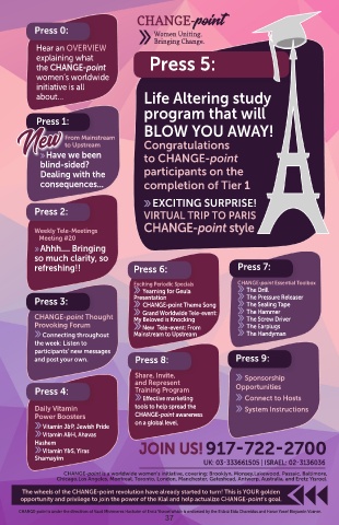 CHANGE-point is a worldwide women’s initiative, covering: Brooklyn, Monsey,Lakewood, Passaic, Baltimore,