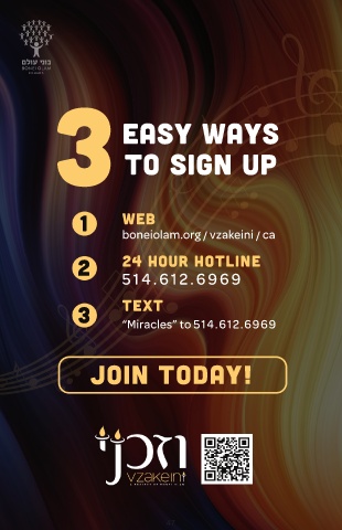 C ANA D A 3 easy ways to sign up 1 web boneiolam.org / vzakeini / ca 2 24 hour hotline 514.612.6969 3 text “Miracles” to 514.612.6969 Join today! 47