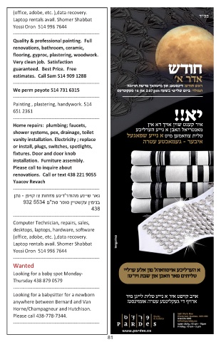estimates. Call Sam 514 909 1288 'א רדא