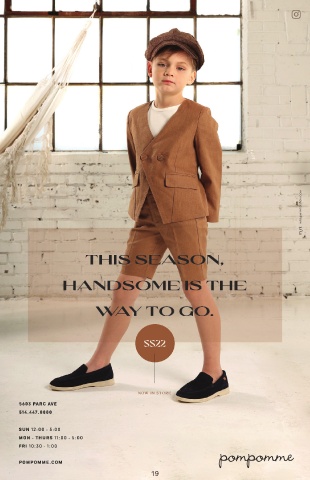 INFO@MYNTDESIGN.COM This season, handsome is the way to go. SS22 N OW IN STORE 5603 PARC AVE 514.447.8880 SUN 12:00 - 5:00 MON - THURS 11:00 - 5:00 FRI 10:30 - 1:00 POMPOMME.COM 19