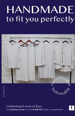 HANDMADE to fit you perfectly customizable Brachasdesign.com ashionable f Celebrating 8 years of Bays Visit Baysbasics.com or call 514 800-6872 book an appointment 36