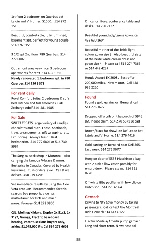 3 1/2 apt 2nd floor 780 Querbes. 514 colour gown size 8. Also beautiful sister
