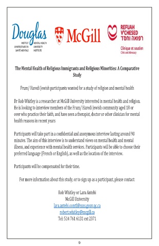 He is looking to interview members of the Frum/ Haredi Jewish community aged 18 or