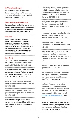 Bernard bet. Querbes and Durocher, included. 514 836 5004 and kitchen