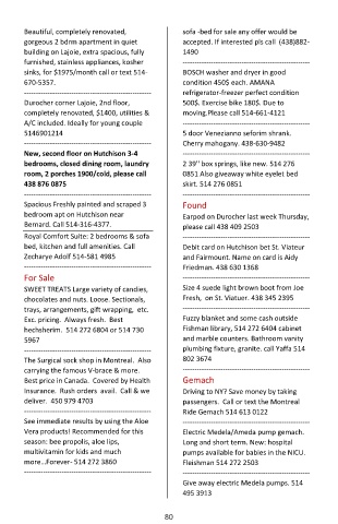 bed, kitchen and full amenities. Call Debit card on Hutchison bet St. Viateur