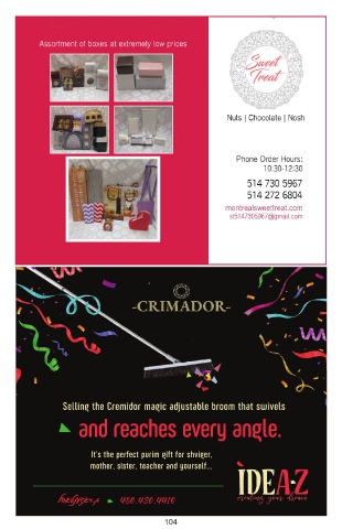 Selling the Cremidor magic adjustable broom that swivels and reaches every angle. It's the perfect purim gift for shviger, mother, sister, teacher and yourself... להאטנעזאר .ג 450.430.4410 104
