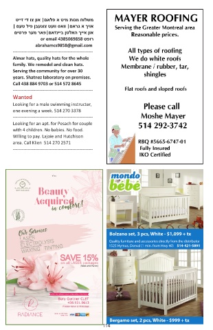area. Call Klien 514 270 2571