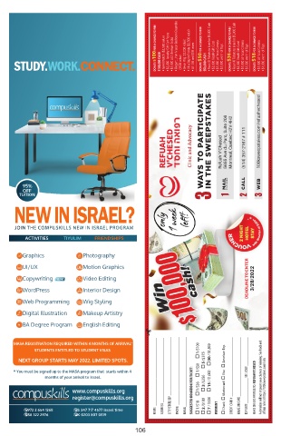 months of your arrival to Israel. NAME ________________________________________ ADDRESS ______________________________________ CITY/STATE/ZIP _______________________________ PHONE ____________________________________ EMAIL_____________________________________ 1/$18 1/$36 1/$50