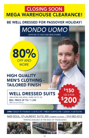 BE WELL DRESSED FOR PASSOVER HOLIDAY!