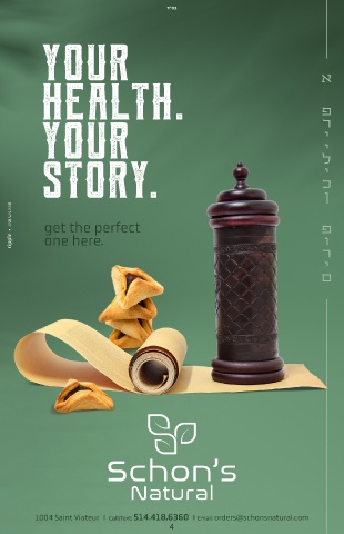 ד"סב your health. א פ your ר י י story. ל י כ ן get the perfect פ one here. ו ר י ם 1004 Saint Viateur II Call/Text: 514.418.6360 II Email: orders@schonsnatural.com 4