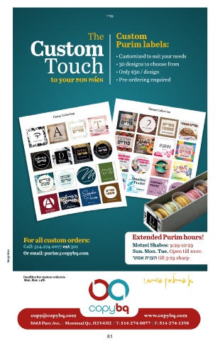 Or email: purim@copybq.com Sun. Mon. Tue. Open till 10:01