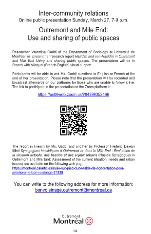 Montréal will present her research report Hasidim and non-Hasidim in Outremont